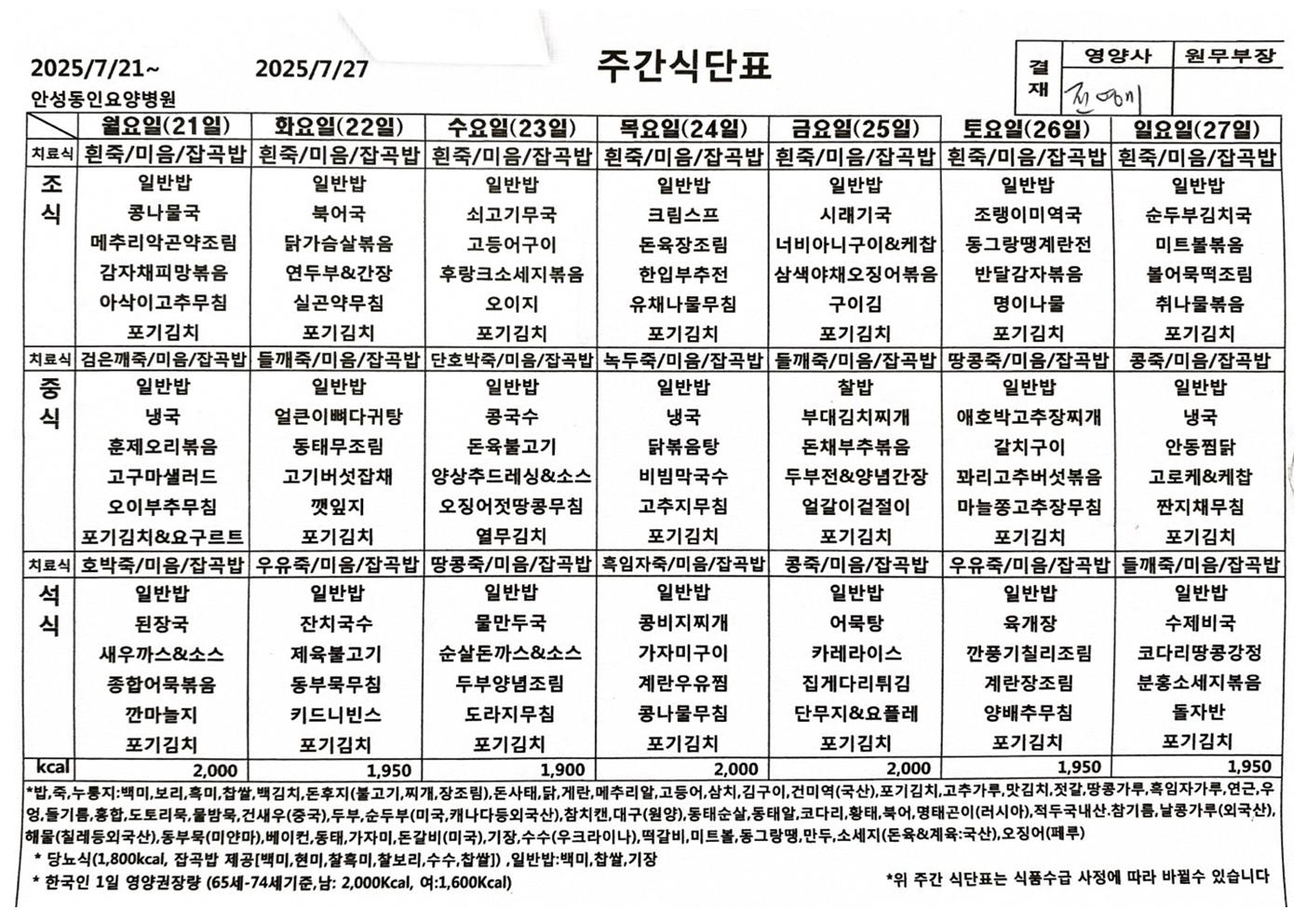 7월 4주 식단표