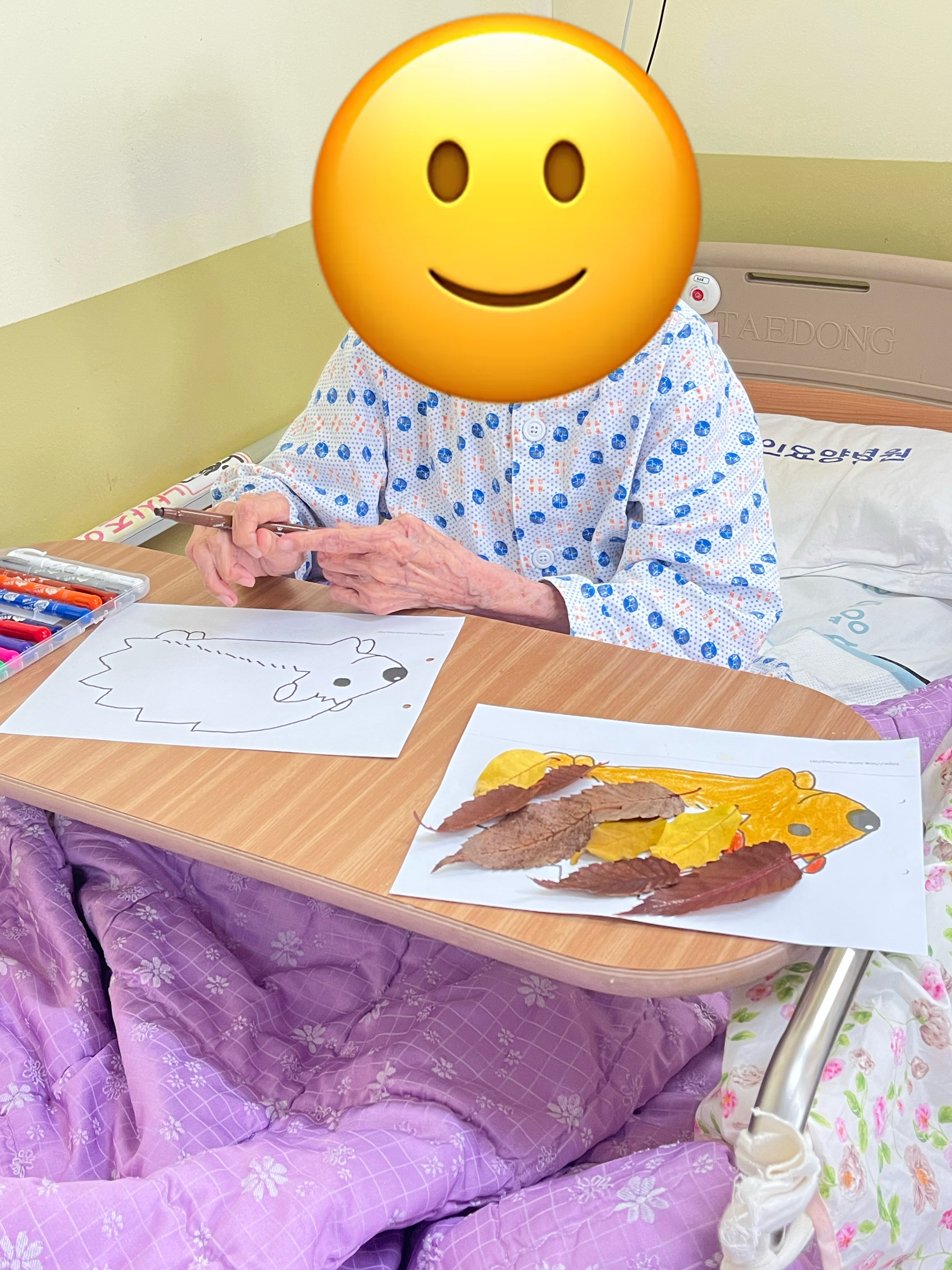 오늘은 낙엽 고슴도치 만들기 프로그램 진행하였습니다. 즐겁게 참여하셨습니다^^